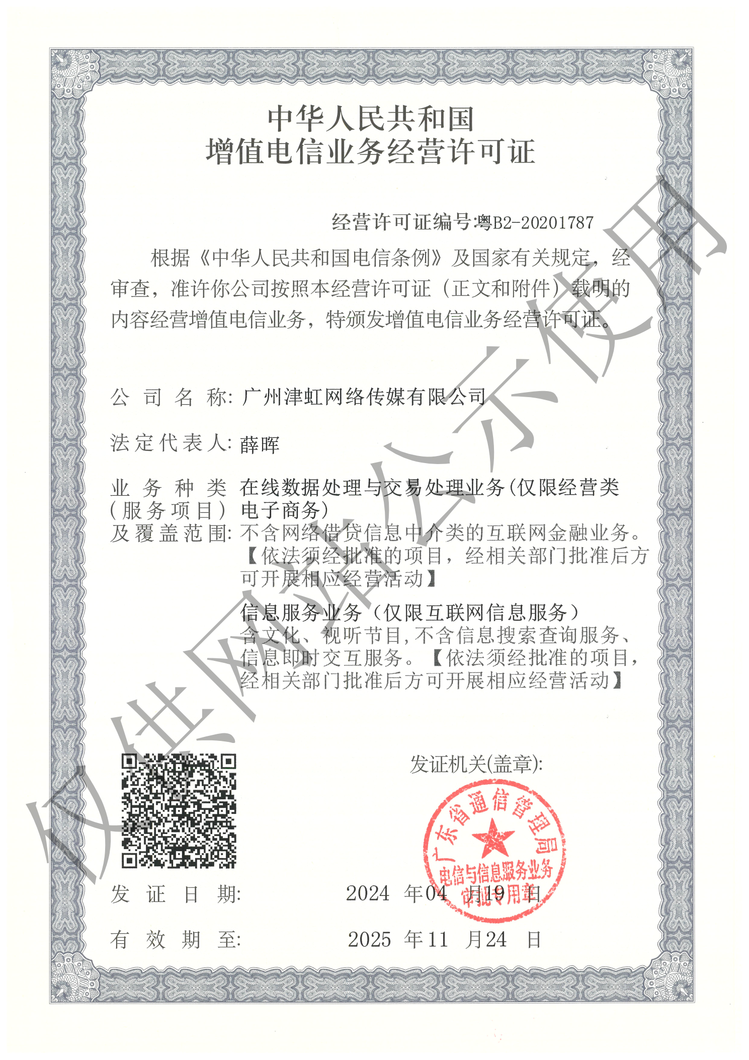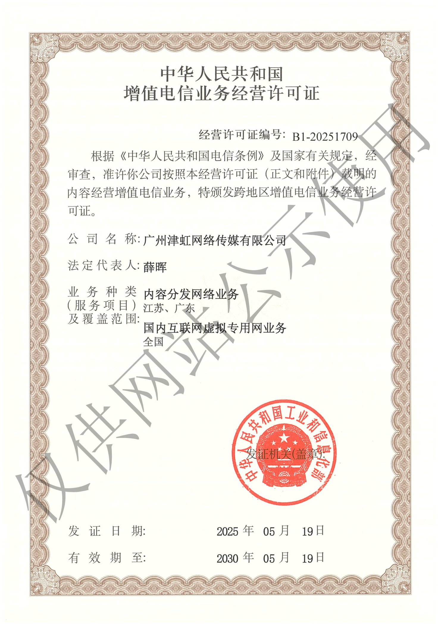 跨地区增值电信业务经营许可证B1-20251709|增值电信业务经营许可证粤B2-20201787